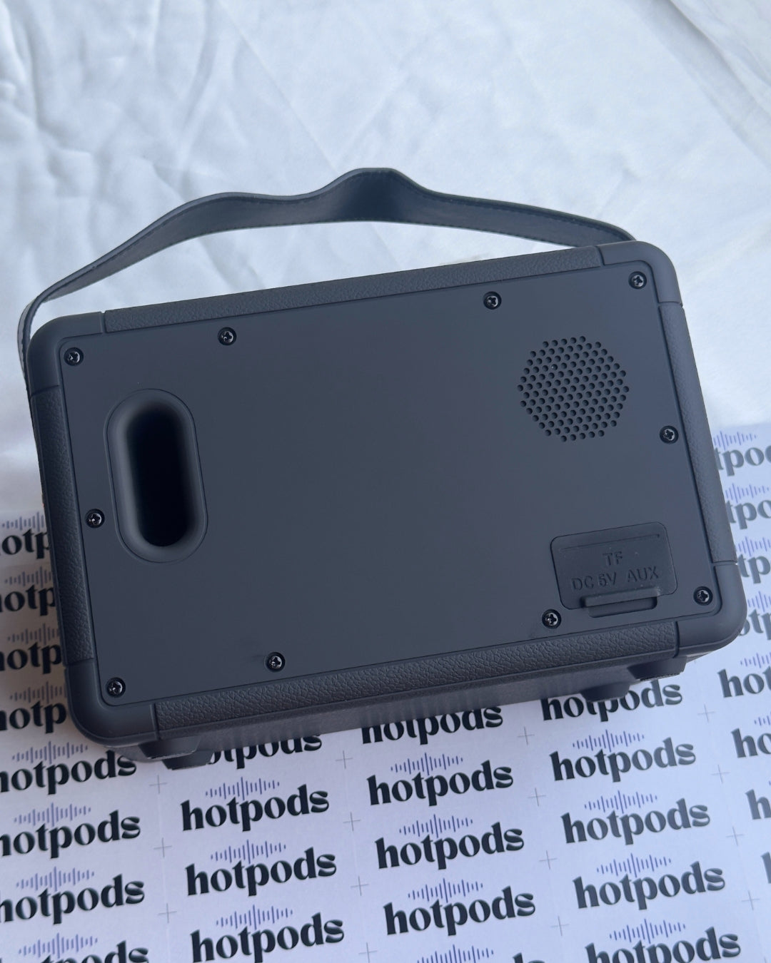 Compact and portable with a rugged silicone exterior and a metal grille |